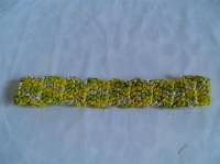 Our crocheted headbands are made in 100% acrylic, with an elastic section in the back for a comfortable fit