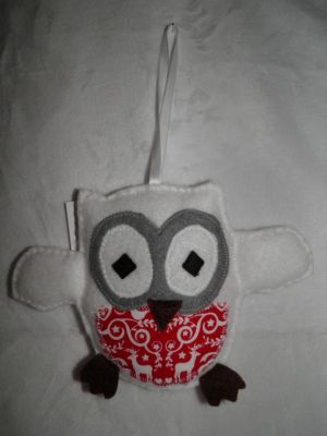 These christmas decorations are handmade by Amber from Owls n' Stuff, with felt outers, all new polyester fill and cotton fabric detail. They feature machine stitched detail and are hand stuffed with hand sewn finishing.