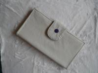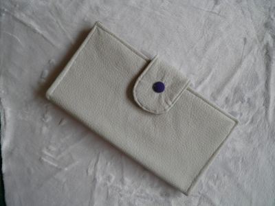 These handmade wallets have an outer layer of white vinyl for sturdiness but the inside is 100% cotton. Each has 6 card slots and a zippered pocket as well as two full width pockets.