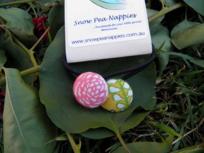 Hair elastics are 55cm diameter, buttons are 19mm and covered with pink and yellow floral fabric