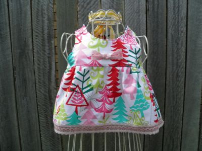 This sweet dress is made in 100% cotton, with lace trim. The straps have buttons to make dressing baby easy, and the bodice is fully lined.